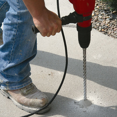 Small 5/8” holes are strategically drilled in the concrete slab.